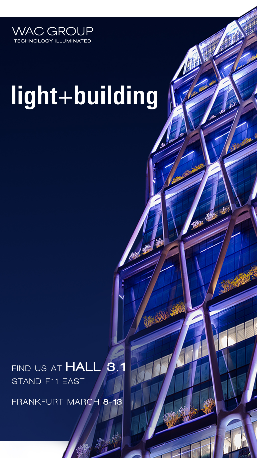 WAC Group德国法兰克福国际照明展现场接待VIP服务预约已开启,同时还有现场门票兑换,点击“详情”了解更多!