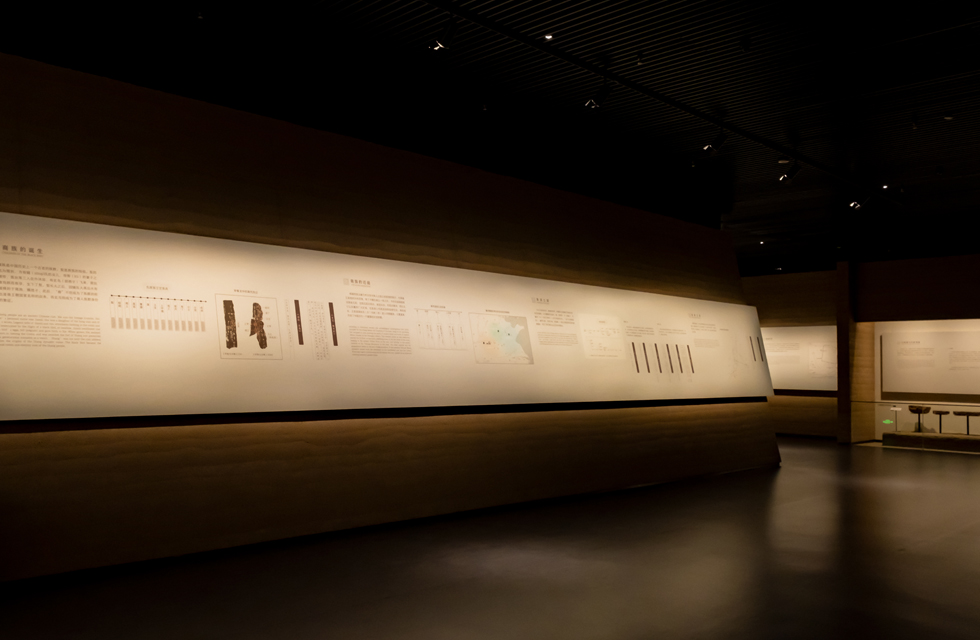 巨幅环形浮雕墙气势磅礴,讲述着先商和商代故事。
