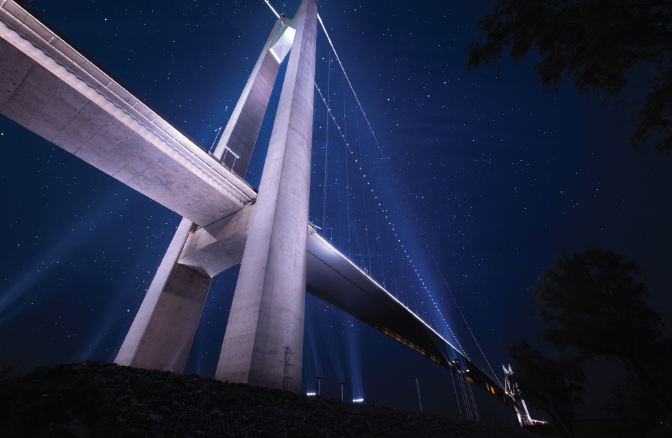 主塔创新性地采用了多层次渐变投光技术,通过精密的灯光控制系统,实现了如丝绸般柔和的色彩过渡效果。这一照明设计开创了国内跨江桥梁夜景艺术的先河,既完美勾勒出263.8米主塔的挺拔身姿,又为长江夜色增添了一抹流动的华彩。