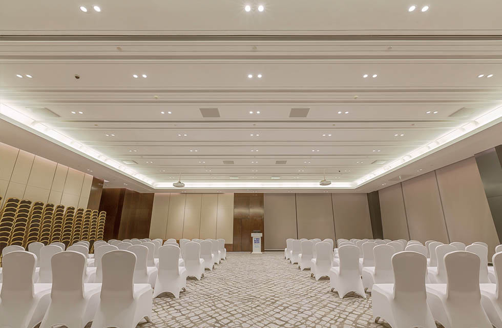 为了保证使用感受高效舒适,会议室中所有的装饰装修性设备在选择时要求都十分严格,而灯具设备方面,WAC Lighting以领先于行业的前沿技术产品征服了室内照明设计师。会议中心大量使用了由WAC提供的灯具设备,比如主会场主席台上空选用了SLANA明装筒灯系列;主会场入口、会议中心一层二层通道走廊、会议中心一层、二层各类会议室均使用了PLANA筒灯系列;入口天棚用的是LANNE 嵌入式防水筒灯系列;主会场及其他会议室的灯光勾勒都是WAC灯带呈现的效果。