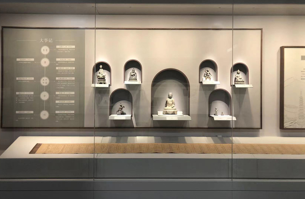 OCULARC 系列可调焦展柜灯与洗墙展柜灯组合使用,同时满足大幅背景图文以及特别展品的照明展示需求。