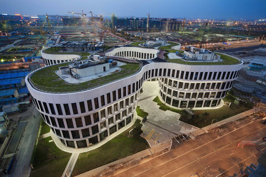 虹桥·协信中心由10栋甲级花园式总部型办公集群组成,楼宇之间高低、宽窄、角度各有不同,大、中、小三种供客户选择的办公平面加上五种不同的建筑高度,组成了一个家庭式的组合变化。