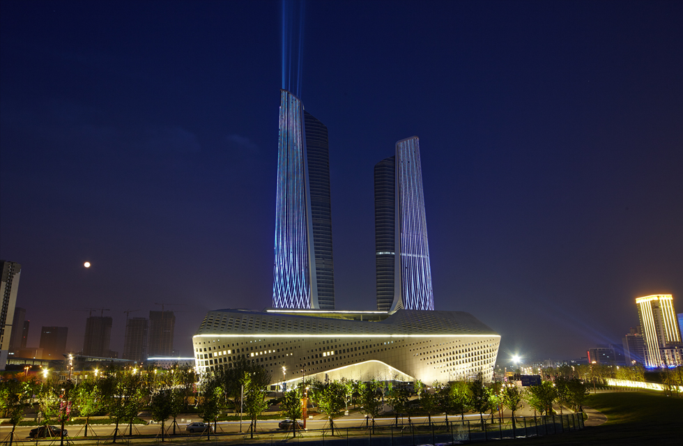 南京青奥中心位于南京市建邺区江山大街北侧,由双子塔和会议中心三部分组成,是五星级酒店、甲级写字楼及会议中心的多功能高端商业综合体,也是“解构主义大师”扎哈哈迪德的最新力作。