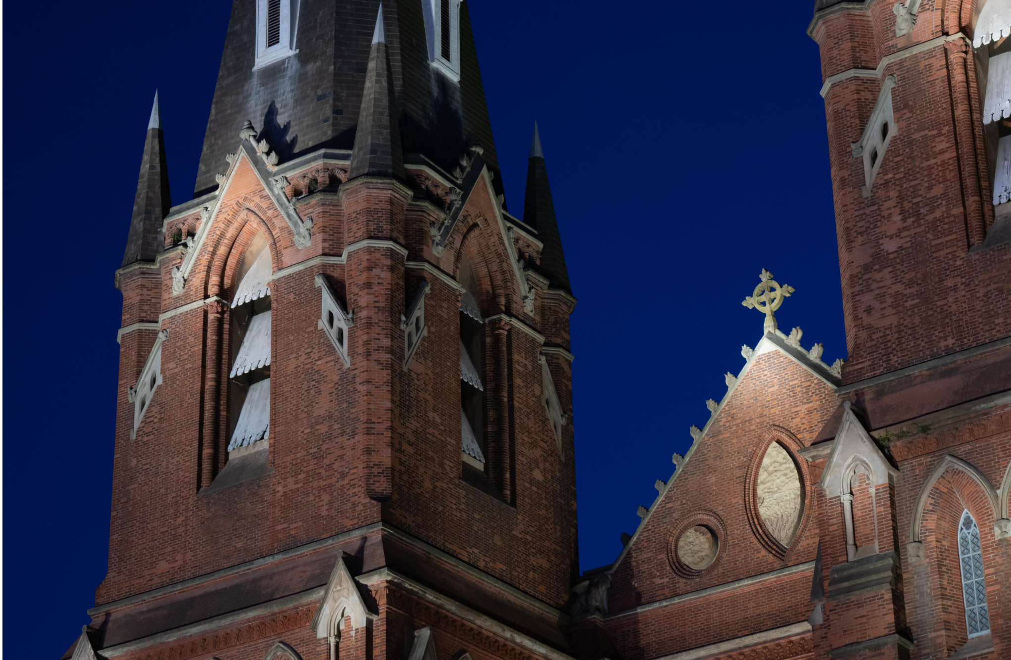清光绪三十年(1904年)动土兴建,1910年9月大堂落成。整幢建筑高五层,砖木结构。法国中世纪样式。大堂顶部两侧是哥德式钟楼,尖顶。高50米。大堂内圣母抱小耶稣像立祭台之巅,俯视全堂,为整座教堂之中心。教堂占地面积2670平方米,建筑面积6670平方米,可容纳3000余人。