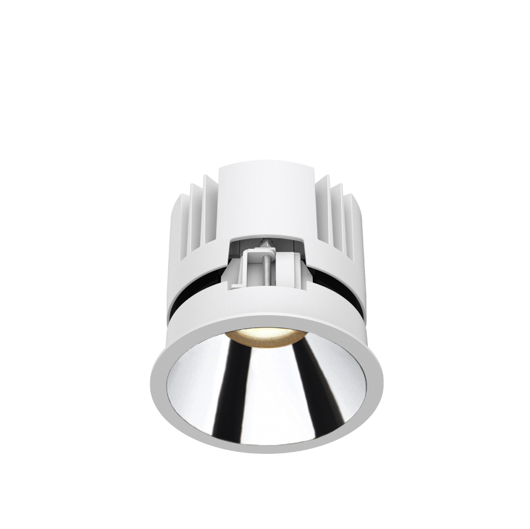 圆形窄边嵌入式下照筒灯,流线型外观,精准的透镜和黑镜反射器设计,保证出光的同时仍能达到极致的防眩效果。封密式光源腔,最大程度减少潮湿环境对其性能的影响。可自由拆卸并更换反射器或光学配件,极大的提高了现场的便利性。