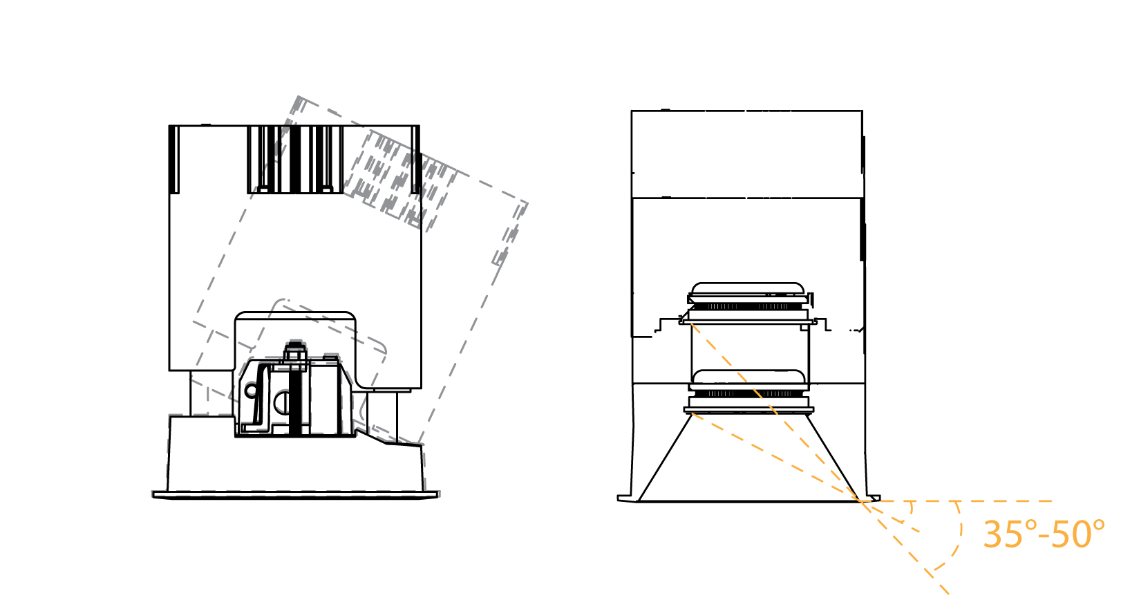 下照调角一体化设计,同时截光角支持 35° 至 50°范围调节,可提供不同程度的视觉舒适度。